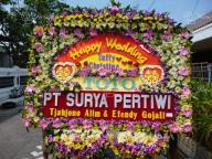 Ukuran papan 250 cm x 150 cm. Bunga lily(pink) yang digunakan adalah bunga kain.