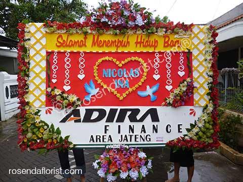 Bunga Papan dengan pigura bunga segar. Bunga dibagian kaki adalah campuran bunga kertas & bunga segar