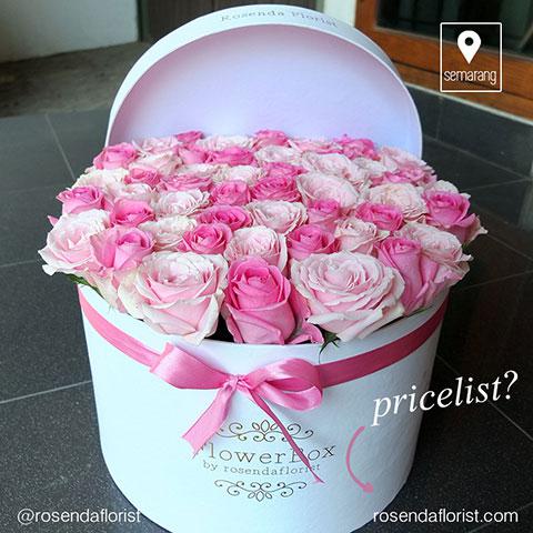 Sorry box warna putih sold out, hanya tersedia warna hitam. Style box = lv1 = bunga berada di bibir box (box tidak dapat ditutup sempurna . Jumlah bunga yang digunakan selalu berubah tergantung ukuran bunga. Box diisi full bunga mawar.