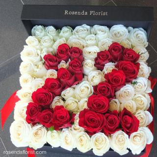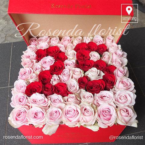 Custom angka/huruf max 2 digit/ heart shape. Style box = lv1 = bunga berada di bibir box (box tidak dapat ditutup sempurna . Jumlah bunga yang digunakan selalu berubah tergantung ukuran bunga. Box diisi full bunga mawar