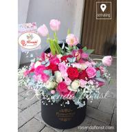 Mix flower dirangkai diatas box.(STYLE = LV2) Untuk rangkaian tipe mix ,baik Warna &jenis bunga, tidak bisa sama persis.