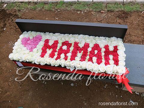 jumbo box , dengan dasar mawar. Huruf dibentuk dari carnation. Harap pastikan tanggal kirim sebelum memesan tipe ini.