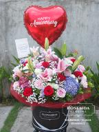 KODE : CB9 BOX 30 CM Untuk rangkaian *MIX flower* setiap kali pembuatan tidak bisa sama persis, baik jenis bunga ,maupun warnanya. Customer bs memilih misal tema WARNA(putih,pink muda,pink tua, merah,kuning, dll ) /soft(warna muda campur ) / campur warna cerah. Jenis bunga/daun akan diaturkan oleh perangkai .