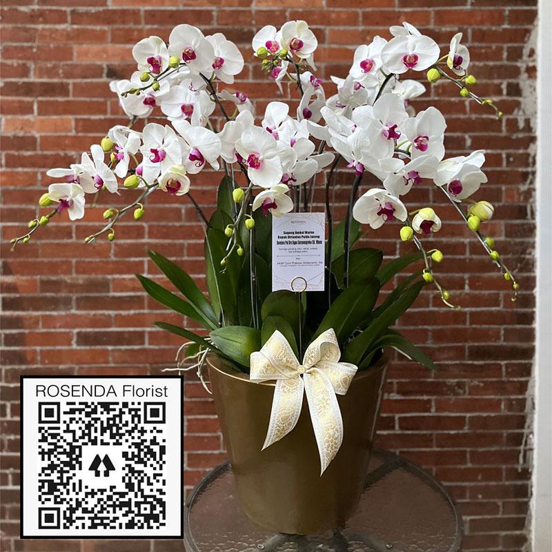 Rangkaian anggrek bulan 10 pohon dalam 1 vas. Silahkan cek warna anggrek bulan yang tersedia ke admin.